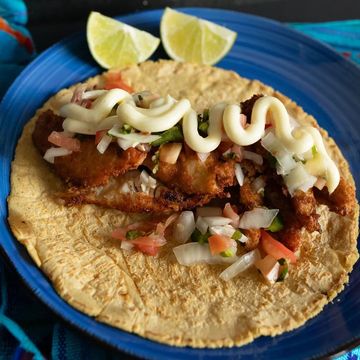 Fried fish topped with mayo and pico de gallo in our hand made corn tortilla