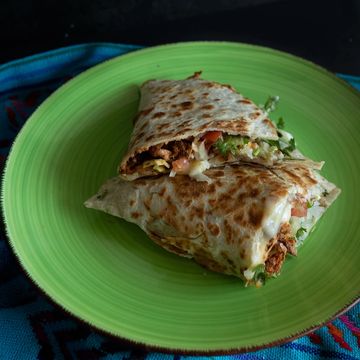 Grilled flour tortilla with melted cheese, your choice of meat, onions, cilantro, lettuce and tomato